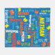 Fun originally designed text name personalized blanket. This blue, orange, yellow, white, grey and red text typographical blanket can also be customized with your own short name, currently reads Nathan. Other name available or contact me for name requests or for help with fitting your name on to this design. Original art and design by Sarah Trett for www.mylittleeden.com