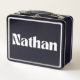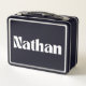 The name "Nathan" is featured prominently in a contemporary font, adding a touch of uniqueness and individuality to the lunchbox, making it easy to identify in a crowded classroom, office, or at lunch. Its clean design and high-quality finish make it an excellent option for personalising with stickers, embellishments, or custom decals, allowing it to truly reflect its owner’s personality.