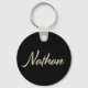 Ein sehr schöner edler personalisierter Button Schlüsselanhänger im whitegold Lettering Look auf schwarz für Nathan.