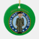National Guard Soldier Christmas Ornament. This Christmas ornament is decorated on the front with the National Guard logo, a toy Soldier wearing the National Guard patch on his beret, and the words "Merry Christmas." The back is decorated with Santa Claus and his bag of goodies. A great gift idea.