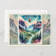 Here’s a vintage-style mountain landscape postcard design with a watercolor colour palette and nostalgic feel.