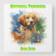 A vibrant illustration celebrating National Purebred Dog Day, featuring a golden retriever, trophy, and American flag elements.