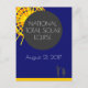 Dark grey image symbolises the Moon which covers yellow and orange image of the shining sun, all at the top and at the upper left corner of a card. White text National Total Solar Eclipse against the Moon. White text August 21, 2017 under the Moon against dark blue background. Yellow line at the bottom symbolises the Earth. Two dark male and female silhouettes in the right corner of a card watch the natural astronomic phenomenon. Informative text on the back of the card. You can change or delete template images and texts. One-of-a-kind postcard for anyone.