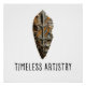 A digital rendering of an ancient Native American arrowhead with the caption “Timeless Artistry”.