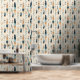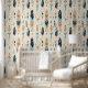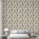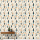 This stunning wallpaper has a Native American feather pattern in addition to polka dots, in tans, peach and blues against a cream coloured background.