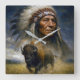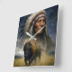 Native American Chief with Charging Buffalo Square Wall Clock