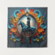 "A dreamlike quilling piece inspired by Native American culture. The silhouette of a woman riding a horse against a colourful background creates a mystical and evocative image."