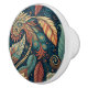 This abstract ethnic pattern cabinet knob features swirls of feathers, flowers, and paisley like shapes n dusty teal, terra cotta, rust, deep blue green, and cream. This vintage style print would fit a variety of decor colours and styles, with a pattern with bold swirls in muted tones.