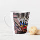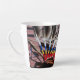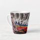 Ceremonial feathers decorate your Latte Mug with vibrant colors.
