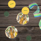 This table confetti has an embroidered look with a Native American lady in yellow traditional clothing holding a bow and arrow in the woods on the large circles. Medium circles are bright yellow, small are dark forest green. Customise your text on all the circles with the templates.