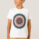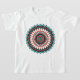 100% cotton so perfect for summer, It is a nicely designed t-shirt, the fabric is soft and the seams finished well, the body of the t shirt has no side seams. I bought a medium size for my two grandsons, aged 9 and 8 it will be slightly big on them but I would rather that than too small