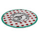 Gift your friend this cutting board with a beautiful Haida Killer Whale from British Columbia, Canada. The background has a pattern of red maple leaves. The border is green.