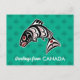 Send your family this postcard with a beautiful Haida Salmon from British Columbia, Canada. The background is green.