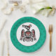 Decorate your party table with these practical paper plates with a beautiful Kaigani Thunderbird from British Columbia, Canada. The background is green with a pattern of maple leaves.