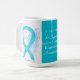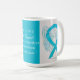 Native American Reparations uses a blue turquoise awareness ribbon to show support for its awareness. This custom mug features blue turquoise awareness ribbon guardian angel art paintings with the message "I Hope and Support Native American Reparations Awareness!" The custom blue turquoise awareness guardian angel ribbon art picture coffee cups or mugs can be customised with personalised messages to make great cause mugs for awareness fundraisers, awareness cup gifts, or other special events or cause support occasions. Make your own customised words for a personal message of hope and support to share!