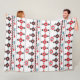 This is a stunning fleece blanket with a pattern of Native American symbols in red, black, and blue. The arrows, sun symbols, dots and cross images are placed on a white background, and repeated across the surface of the blanket. Very distinctive and attractive.