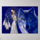 this lovely poster design with a beautiful native american woman, dreamcatcher and a wolf coloured in blues...