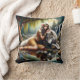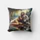 Native American Woman Embracing Wolf by Waterfall Cushion