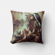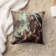 Native American Woman Posing With Raven by River Cushion