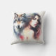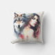 A Native American woman stands confidently next to a majestic wolf, showcasing their deep connection and shared spirit in a vibrant, artistic setting.