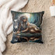Native American Woman Relaxing By A Wolf Cushion