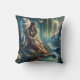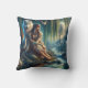 Native American Woman Relaxing by Water With Wolf Cushion