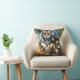 Native American Woman Sitting by a Tiger at Dawn Cushion