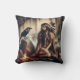 Native American Woman Sitting by River With Raven Cushion