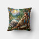 Native American Woman Sitting With Wolf By River Cushion