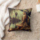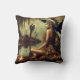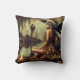 Native American Woman With Raven By A Campfire Cushion