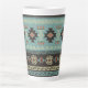 Native American / Tribal blanket inspired pattern features geometric designs. Palette: brown, orange, sky blue and cream white.