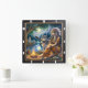 Native bloom, pond lilies morning light. Timepiece reflects peaceful dawn. Feel the river's rhythm of tranquillity with this captivating timepiece, where the wildwood heart beat reveals every detail. Witness the serene bond between a young, beautiful Native Indian woman and a majestic grey wolf, their presence a testament to nature's enduring spirit. Delicate willow boughs sway in the gentle breeze, while the comforting warmth of a campfire casts a peaceful glow on their rocky sanctuary. A flowing stream reflects the ethereal beauty of their shared moment, carrying the subtle scent of river stones and pine. Feel the quiet magic of a moment beyond time, and create your own masterpiece with our Design Tool. Personalise the numerals and hands to craft a unique haven, a sanctuary of peace in any space.