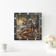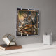 Find native calm, forest floor evening dream. Timepiece reflects serene night. Find timeless peace with this mesmerising timepiece, where the pond stillness art reveals every detail. Witness the profound connection between a young, beautiful Native Indian woman and a majestic grey wolf, their presence a silent guardian of nature's serenity. Willow branches sway gently in the soft breeze, while the warm glow of a campfire paints a comforting scene on their rocky perch. A tranquil pond reflects the ethereal beauty of their shared moment, carrying the subtle scent of water lilies and cool air. Feel the quiet magic of a timeless scene, and design your own story with our Design Tool. Personalise the numerals and hands to create a personal sanctuary, a haven of peace in any room.