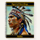 A Native Indian warrior stands tall, adorned with a magnificent feathered headdress. His fierce expression reflects a deep connection to tradition and culture, set against a serene blue sky.