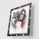 Feel native essence, forest's heart evening glow. This timepiece reflects the deep connection to nature. Witness the profound bond between a young, beautiful Native Indian woman and a majestic grey wolf, their presence a testament to nature's enduring harmony. Feel the quiet magic of a timeless scene, and express your soul with our Design Tool. Customise the numerals and hands to create a personal sanctuary, a haven of peace in any room.