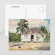 A postcard with the fine art watercolor painting by the American artist Winslow Homer (1836-1910) Native Huts, Nassau (1885). A tropical scene with a rooster in the foreground. Huts with roofs of straw and palm trees in the background.