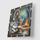 Feel native rhythm, willow dance twilight song. This timepiece reflects the grace of nature's dance. Feel the whispering wind of tranquillity with this captivating timepiece, where the willow leaves dance art reveals every detail. Witness the serene bond between a young, beautiful Native Indian woman and a majestic grey wolf, their presence a testament to nature's enduring grace. Delicate willow fronds sway in the gentle breeze, while the comforting warmth of a campfire casts a peaceful glow on their rocky sanctuary. A flowing stream reflects the ethereal beauty of their shared moment, carrying the subtle scent of damp earth and river stones. Feel the quiet magic of a moment beyond time, and create your own masterpiece with our Design Tool. Personalise the numerals and hands to craft a unique haven, a sanctuary of peace in any space.