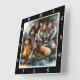 Embrace native serenity, tiger's dream starlight pines. This timepiece captures a moment of peaceful harmony. Gaze into a starry night of tranquillity with this mesmerising timepiece, where the pines echoes calm reveals every detail. Witness the profound connection between a young, beautiful Native Indian woman and a powerful Bengal tiger, their presence a silent guardian of nature's harmony. Willow branches sway in the cool night breeze, while the warm glow of a campfire paints a comforting scene on their rocky perch. A tranquil pond reflects the ethereal beauty of their shared moment, carrying the subtle scent of pine needles and starlight. Feel the quiet magic of a timeless scene, and design your own story with our Design Tool. Personalise the numerals and hands to create a personal sanctuary, a haven of peace in any room.