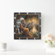 Native spirit, stone circle still dream. Timepiece captures tranquil moment. Follow the hidden trail to tranquillity with this enchanting timepiece, where the forest heartbeat art reveals every detail. Witness the profound connection between a young, beautiful Native Indian woman and a majestic grey wolf, their stillness a reflection of nature's quiet rhythm. Willow leaves rustle softly in the gentle breeze, while the warm glow of a campfire paints a comforting scene on their rocky perch. A serene pond reflects the ethereal beauty of their shared moment, carrying the subtle scent of woodland moss and wildflowers. Feel the tranquil magic of a timeless scene, and express your soul with our Design Tool. Personalise the numerals and hands to create a personal sanctuary, a haven of peace in any room.