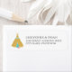 Modern tipi in gold with aqua accents. Two red arrows in front "on the ground." Text can be easily customised!