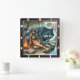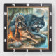 Follow native trail, hidden glade soft song. Timepiece shows peaceful moment. Gaze into a starry night of tranquillity with this mesmerising timepiece, where the pines echoes calm reveals every detail. Witness the profound connection between a young, beautiful Native Indian woman and a majestic grey wolf, their presence a silent guardian of nature's harmony. Willow branches sway in the cool night breeze, while the warm glow of a campfire paints a comforting scene on their rocky perch. A tranquil pond reflects the ethereal beauty of their shared moment, carrying the subtle scent of pine needles and starlight. Feel the quiet magic of a timeless scene, and design your own story with our Design Tool. Personalise the numerals and hands to create a personal sanctuary, a haven of peace in any room.