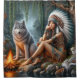 Native woman and wolf by the stream shower curtain