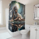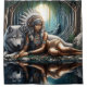 Native woman shares a moment with wolf shower curtain