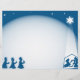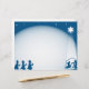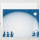 Simple blue and white silhouette Christmas nativity scene. Easily customise and add your own Christmas greeting or scripture verse in the space. Image available on various gifts and products.