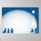 Simple blue and white silhouette Christmas nativity scene. Easily customise and add your own Christmas greeting or scripture verse in the space. Image available on various gifts and products.