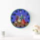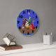 This clock features a beautiful Nativity scene depicting the birth of Jesus Christ on a lovely darker blue background. Numbers are done in black as to aid in visibility without detracting from the picture and minute markers are defined in green - as is the border.