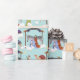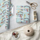 Nativity paper with a Light blue background, featuring, Mary, Jesus, Joseph, Shepherd, Star, Angel, Donkey, Sheep