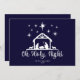 Simple and lovely Oh Holy Night script typography with nativity on a navy blue background. Room for your family name and year. See coordinating items such as wrapping paper, gift tags as well as variations of this card with photos in our shop.