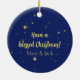 The back of the design is the same colour and uses the same scattered stars, with the text, "Have a blessed Christmas," and the names, "Mary & Jack."