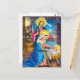 Nativity of Jesus x-mas card. Joseph and Mary with Jesus in manger